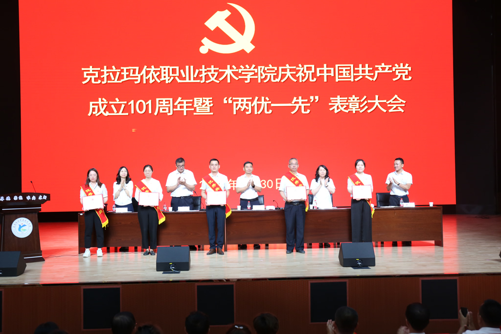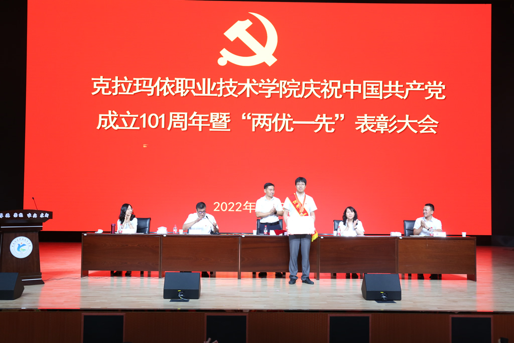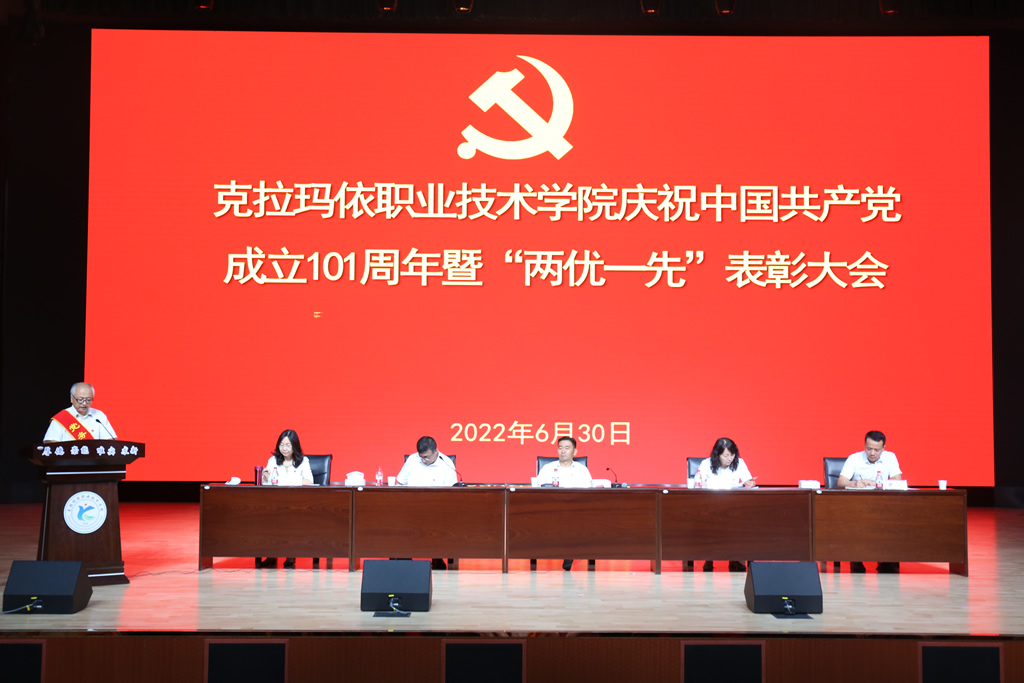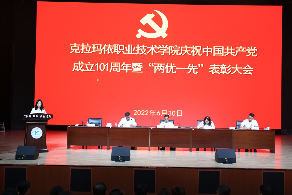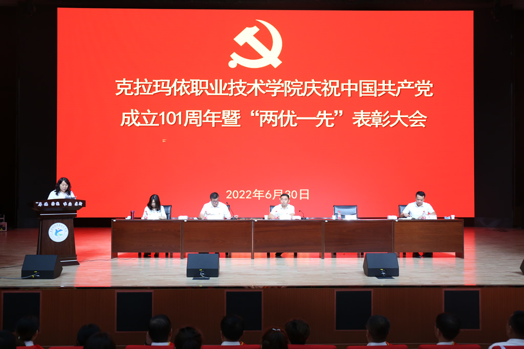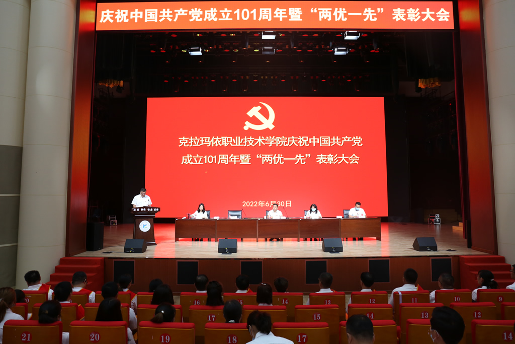 2022630日上午1030,在克拉玛依校区学生活动中心,学院隆重召开庆祝中国共产党成立101周年暨两优一先表彰大会。重温党的光辉历程,讴歌党的丰功伟绩,总结表彰在学院党的建设工作中,做出突出贡献的基层党组织和共产党员,进一步动员广大党员,解放思想、鼓足干劲、扎实工作、为凝心聚力谱写学院发展新篇章贡献自己的智慧和力量。
