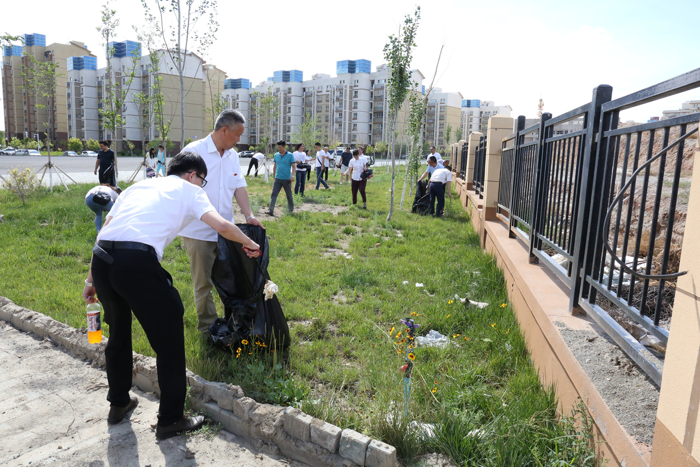 大家在社区工作的安排下,将城南的安居和乐业苑,分别划分了四个片区,3个党支部的党员为一组,共12个支部分别活跃在社区的各个角落。社区是我家,服务你我他。大家拿钳子,戴上手套,将社区的白色塑料袋,食品的包装纸等垃圾进行清理装袋。骄阳似火,越是恶劣天气,越体现了党员同志们的奋斗和奉献精神。经过近一个多小时的志愿活动,城南的安居和乐业苑的卫生得到显著改善。