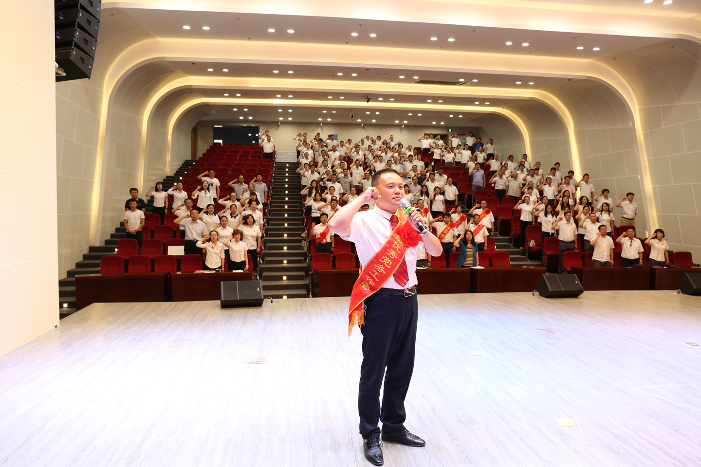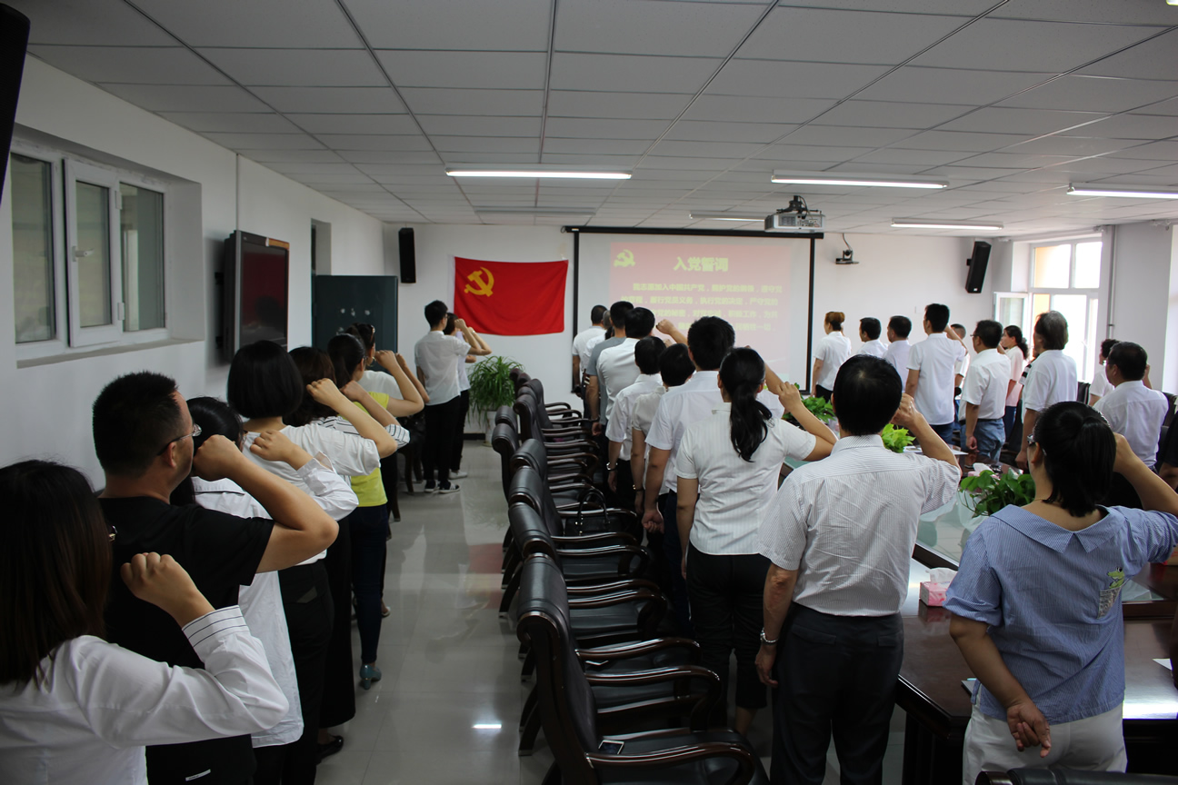 “我志愿加入中国共产党,拥护党纲领……”全体党员起立,面向党旗,由市级优秀党务工作者鲁志刚同志领誓,重温入党誓词。