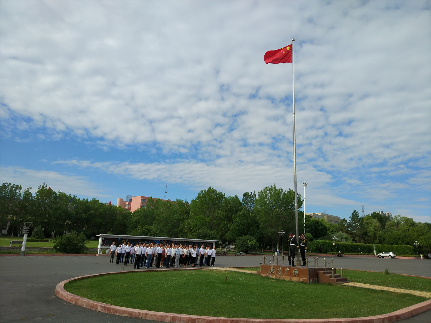 “升国旗,奏唱国歌!”上午10时,在学院J1办公楼前,克拉玛依校区全体党员庄严肃穆,学院国旗护卫队学生踏着铿锵有力的步伐阔,与学院教职工党员迎接党的生日,与此同时在独山子校区全体党员在英才广场,同时举行升国旗仪式。