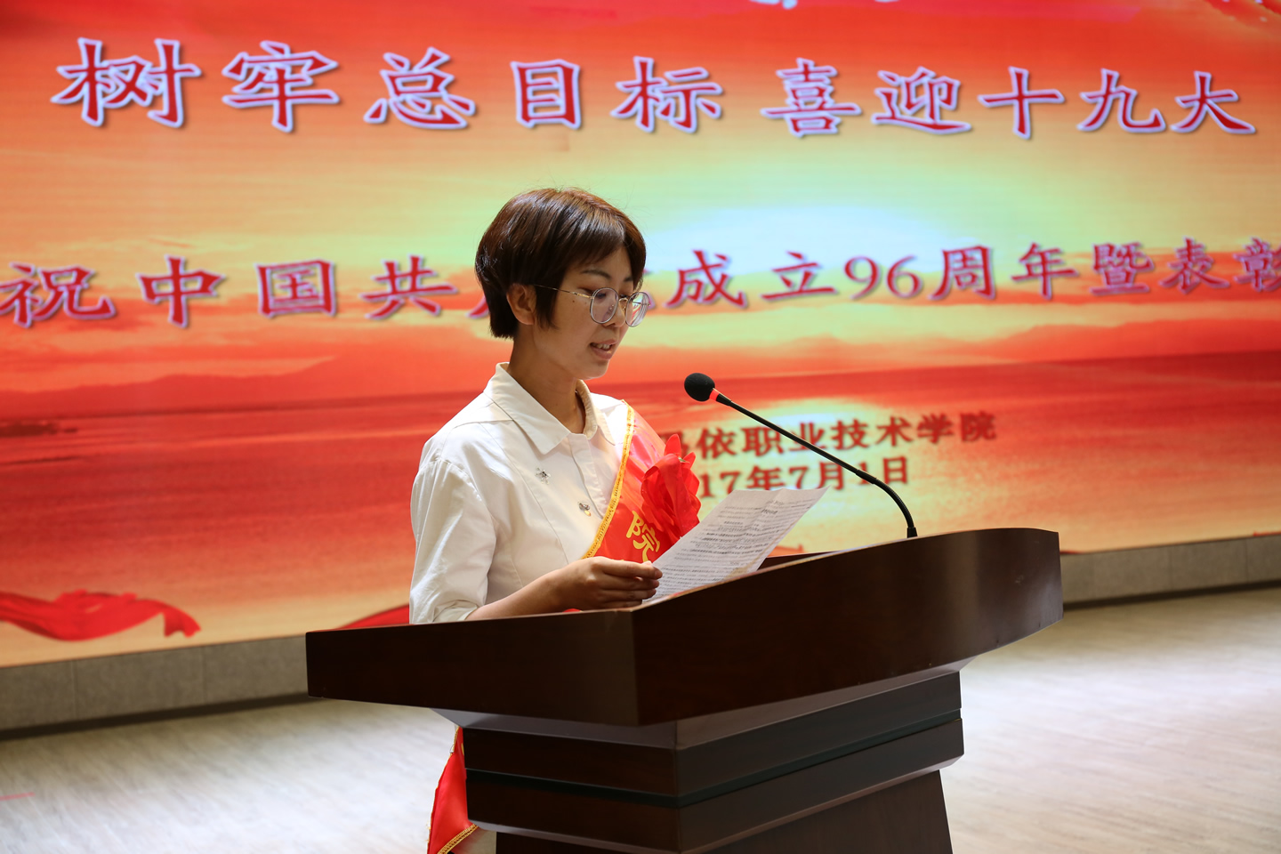 经济管理系辅导员胡文同志作为优秀党员代表进行发言,她说:辅导员与学生接触最密切,从迎接新生,违纪处分,奖助表彰,就业指导,心理辅导,入团入党,到组织活动等等,做最基层的工作需要巨大的耐心和对学生无私的爱。时刻牢记党的教育,继续加倍努力,在本职工作中、在学校发展中做出应有贡献,为成为一名优秀党员不懈努力,以实际行动为党旗增辉!