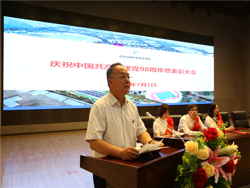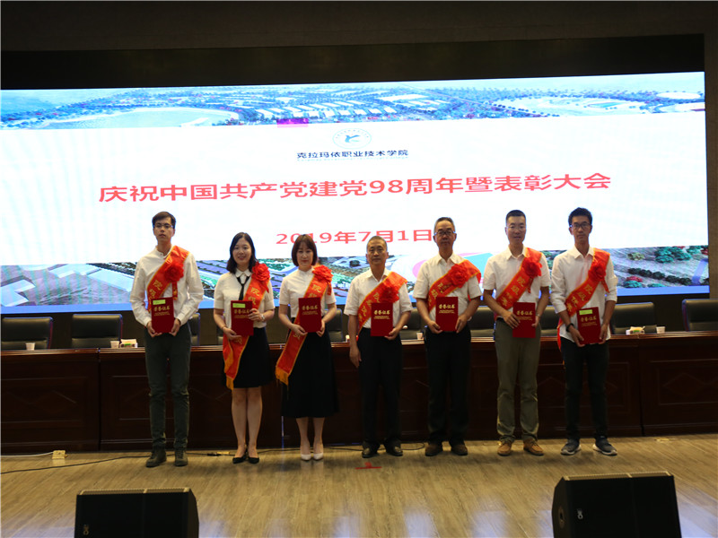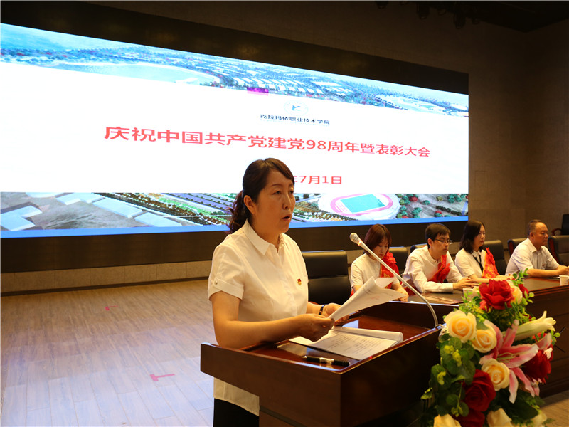 为扎实推进“不忘初心,牢记使命”主题教育活动,2019年7月1日下午16:00,学院在克拉玛依校区J2学术报告厅开展庆七一表彰大会暨12371主题党日活动。参加此次主题教育的有学院党委书记、副院长王和,党委副书记、院长付梅莉以及克拉玛依校区全体党员教师。