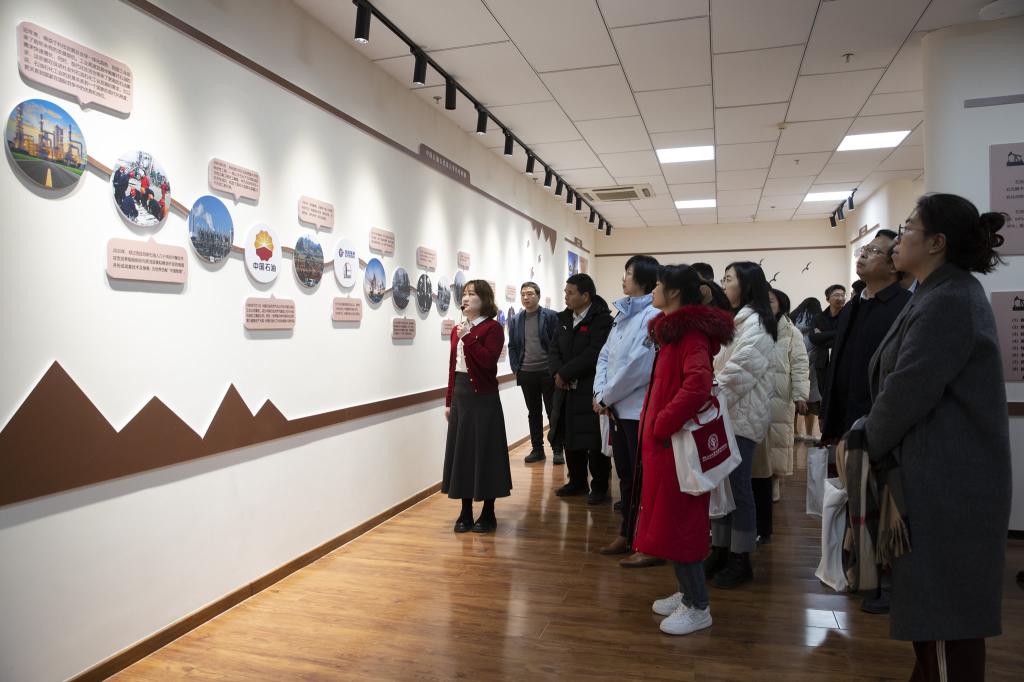 观摩的老师随后来到学院石油石化精神体验馆。石油工程分院的狄娜老师做以精彩讲解。为了我国石油工业的发展,一代代石油人更是付出了无数艰辛。诸多石油战线的先进事迹汇聚凝练出了“大庆精神”、“铁人精神”、“克拉玛依精神”等石油人的精神支柱——中国石油精神,这不仅是石油人攻坚克难、勇往直前的象征,更可以作为我们石油院校教师师德师风建设的宝贵财富,他们的英雄事迹久久相传,指引着我们为能源安全贡献更多力量,更影响着一代代石油人传承石油精神,涌现出一批批新时代的石油英雄人物,这一区域便是新时期“我为祖国献石油”的代表人物,我们的大国工匠谭文波和郭旭光。